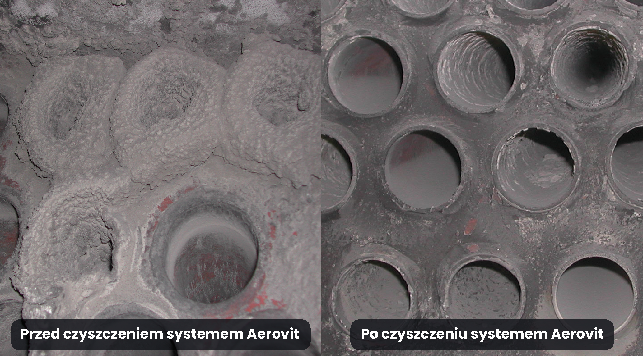 Rozwiązania Aerovit do czyszczenia kotłów pomagają utrzymać optymalną wydajność kotła, zapobiegając narastaniu osadów. Zapewnia to stabilny transfer ciepła, minimalizuje straty energii i ogranicza potrzebę częstych wyłączeń.